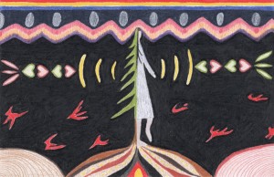 “Art as an isolated phenomenon is unknown to the Sámi. As a result, artists as a professional group are also a product of modern society, a result of the mad rush of our time. Through the Sámi lifestyle, each moment in life becomes an artistic experience. Carving with a knife, colorful clothes with a belt, a cap and a scarf, white moccasins on the snow, isn’t it a dance, even if the steps may be unsteady from time to time? Isn’t it beautiful when folk sit down in the snow, make a fire and gather around the flames?”