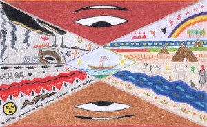 “Although they comprise less than 5% of the world population, Indigenous peoples protect 80% of the Earth’s biodiversity in the forests, deserts, grasslands and marine environments in which they have lived for centuries.” What is missed is that ideally, Indigenous peoples protect all of existence – not just percentages.” (p. 201).